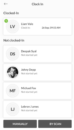 Tap No on the popup. This opens the Clock In screen. Here you will see your crew listed in three categories: Clocked-In, Absent and Not Clocked-In.